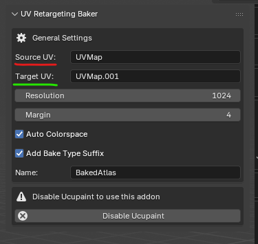 - Add Bake Type Suffix. This will auto-name your baked images, e.g. Name: BakedAtlas, if you bake Diffuse, the final image name is BakedAtlas_Diffuse